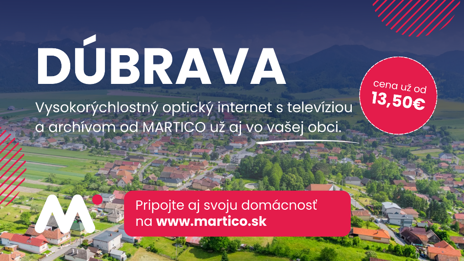 Spoločnosť MARTICO pokračuje v rozširovaní služieb optického internetu a už aj obyvatelia obce Partizánska Ľupča si môžu objednať služby rýchleho, stabilného a spoľahlivého optického pr Spoločnosť MARTICO pokračuje v rozširovaní služieb optického internetu a aj obyvatelia obce Dúbrava si môžu objednať služby rýchleho, stabiln&eac Spoločnosť MARTICO pokračuje v rozširovaní služieb optického internetu a aj obyvatelia obce Ľubeľa si môžu objednať služby rýchleho, stabilného a Mobilná TV aplikácia: Ovládnite svoju televíziu, sledujte ju kedykoľvek a kdekoľvek v mobile, tablete, notebooku, hernej konzole či Android TV alebo Apple TV. Buďte pánom času a obsahu obľúbené rel& Prinášame Vám „Zákaznícku zónu“ kde sú všetky Vaše MARTICO dokumenty prehľadne uložené na jednom mieste. Ľahká o S radosťou vám oznamujeme, že spoločnosť MARTICO pokračuje v rozširovaní svojej modernej optickej siete! Odteraz si aj obyvatelia obce Liptovská Štiavnica môžu užívať výhody rýchleho, s S radosťou vám oznamujeme, že spoločnosť MARTICO pokračuje v rozširovaní svojich služieb prostredníctvom moderných optických sietí! Už teraz si aj obyvatelia obce Liptovské Sliače m&oci S radosťou vám oznamujeme, že spoločnosť MARTICO pokračuje v rozširovaní svojich služieb prostredníctvom moderných optických sietí! Odteraz si aj obyvatelia obce LISKOVÁ môžu objednať s S radosťou vám oznamujeme, že spoločnosť MARTICO pokračuje v rozširovaní svojej modernej optickej siete! Odteraz si aj obyvatelia obce Ludrová môžu užívať výhody rýchleho, stabilného a S radosťou vám oznamujeme, že spoločnosť MARTICO pokračuje v rozširovaní svojej modernej optickej siete! Odteraz si aj obyvatelia obce Štiavnička môžu užívať výhody rýchleho, stabilnéhoAktuality